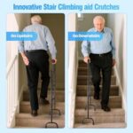 Stair canes for seniors, stair cane for elderly – light carbon steel with anti-rust coating, easy to carry. Ideal for seniors, post-surgery recovery; durable design offers long-term stability for indoor stairs & outdoor mobility.