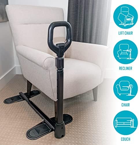 Fully Adjustable: Install the mobility aid under the feet of most 4 legged chairs with feet 20 to 36 inches apart; the handle height adjusts from 34 to 40 inches from the floor; reference our video and images to determine compatibility with your furniture
