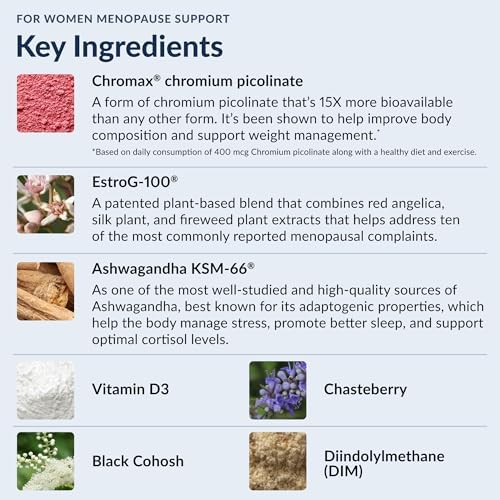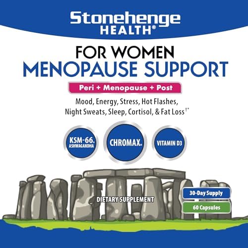 Home Women health Menopause support Stonehenge Health for Women Menopause Support for Peri + Menopause + Post – Mood, Energy, Stress, Hot Flashes, Night Sweats, Sleep & Cortisol, Chromax Chromium, Vitamin D3, KSM-66 Ashwagandha Extract