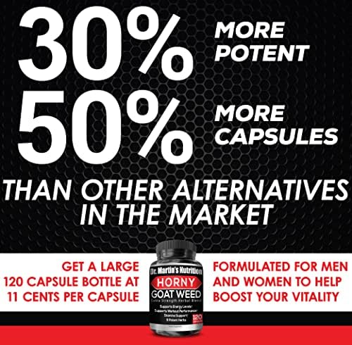 50% EXTRA CAPSULES: Not only are you getting more strength per serving but our larger 120 Capsule count gives you 2 months supply of Horny Goat Weed We give 60 capsules more than the average.