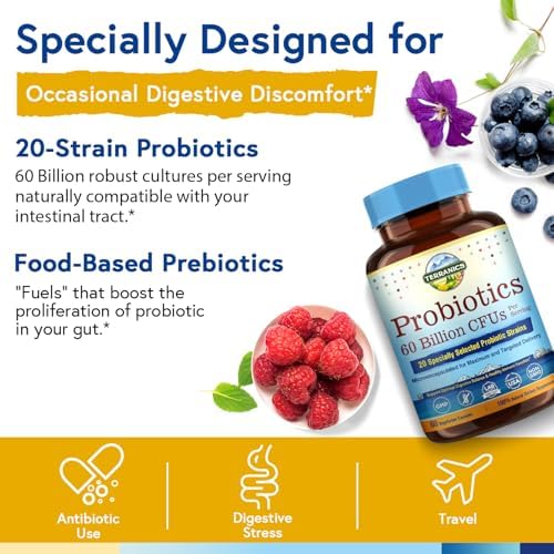Shelf Stable Probiotic with Prebiotic: Terranics Probiotics 60 Billion CFU are formulated with Delayed Release Technology, which allows high potency probiotics survive stomach acid and reach your intestinal tract effectively. Our probiotics do not necessarily require refrigeration, so they are convenient at home or for travel.