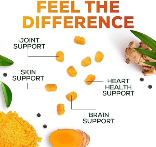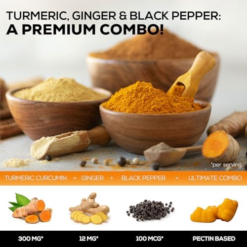 TURMERIC GUMMIES HIGH ABSORPTION FORMULA: Delicious turmeric gummies combine turmeric curcumin with black pepper for superior absorption; A convenient turmeric supplement with black pepper designed to support joints and overall wellness in easy-to-take gummy form