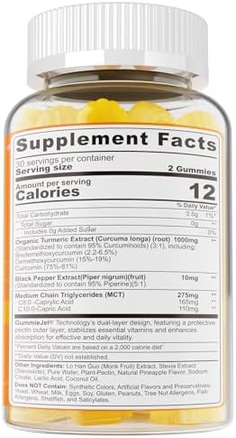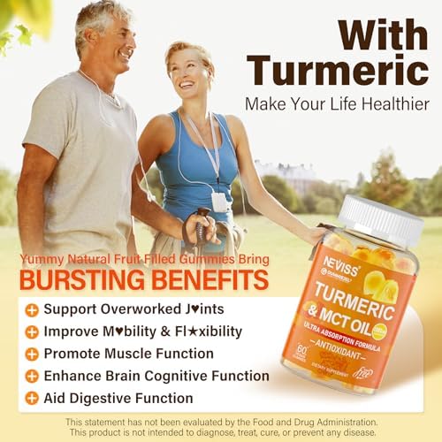 Turmeric Gummies 1000mg w/MCT Oil C8 C10, Organic Antioxidant, Turmeric Curcumin Supplement with Black Pepper Extract, Support Comfort, Boost Energy, Ultra Absorption, Sugar Free, 60 Cts