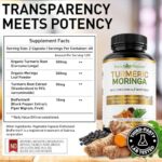 Supercharge your wellness journey with Pius Nature Turmeric Moringa and discover the incredible synergy of two superfoods in one powerhouse supplement. Each 1100 mg serving is packed full of organic turmeric root powder and organic moringa leaf powder. We use the highest quality ingredients in our turmeric root and moringa powder supplement. Our turmeric extract is standardized to an impressive 95% Curcuminoids, a potent antioxidant. Moringa, known as the miracle tree, is loaded with all 22 amino acids, vitamins A, C, B, E, iron, calcium, and potassium. To top it all off, there’s 10mg of BioPerine, a proprietary black pepper extract that enhances absorption to ensure that you get the most out of every capsule.