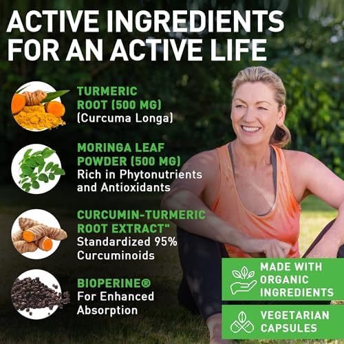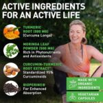 Maximized Curcumin Potency – Our turmeric and moringa powder organic capsules contain turmeric extract that’s been standardized to 95% curcuminoids. It’s the active component that helps combat soreness and stiffness and is high in antioxidants.