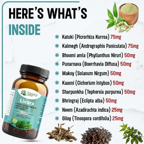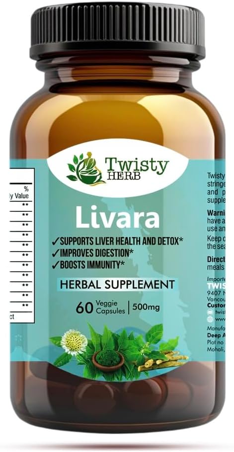 Home Natural and Herbal wellness Natural Ayurvedic formulas Twisty Herb- Livara Herbal Supplement for Liver Health and Detox, 500mg, 60 Veggie Capsules, Vegan, Ayurvedic-Naturopathic Dietary Supplement.