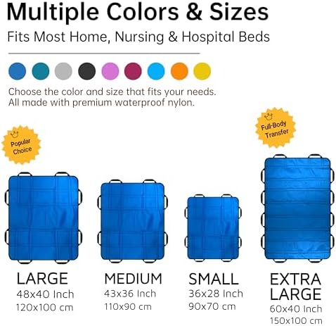 **Waterproof, Breathable, and Reusable: The waterproof nylon fabric offers high protection against spills and accidents while remaining breathable for comfort. It’s durable enough for repeated use and can be used as a glide sheet or transport pad. Ideal for preventing bed sores and managing bed mobility for patients, this bed transfer pad provides long-lasting comfort and protection.