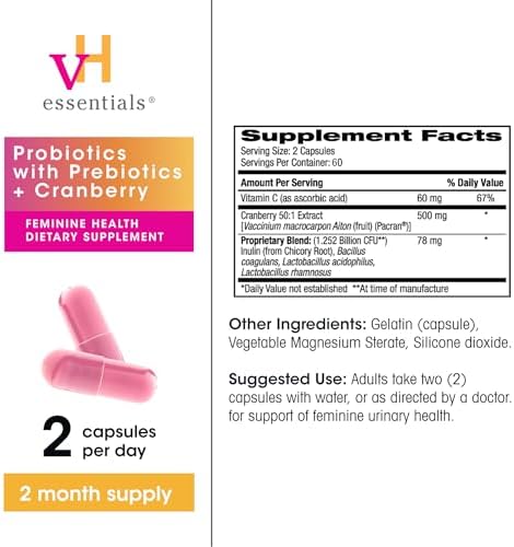 120 vH essentials Probiotics with Prebiotics and Cranberry Feminine Health Supplement Probiotic Capsules