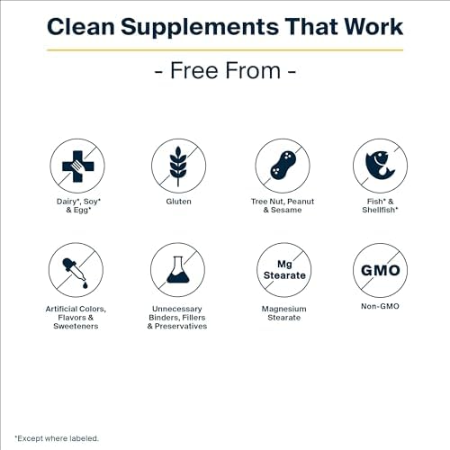 Clean Vegan Formula: Free from gluten, dairy, peanut, tree nut, fish, shellfish, soy, sesame, and egg Non-GMO Made without artificial fillers, coatings, binders, or colors