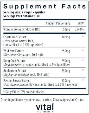 PMS Support Supplement for Women: Our unique formula helps address minor discomforts associated with the menstrual cycle* The unique combination of ingredients, including vitamin B6, chaste tree extract, and dong quai extract, helps with uterine comfort and the perception of well-being*