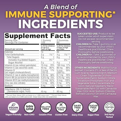 8-in-1 Daily Immune Support for Kids*: Give your child daily immune support with our delicious, sugar-free elderberry gummies.* Our kids elderberry gummies deliver a comprehensive blend of Sambucus Elderberry, Zinc, and essential Vitamins A, C, D, E, B6, and B12 for year-round wellness.*