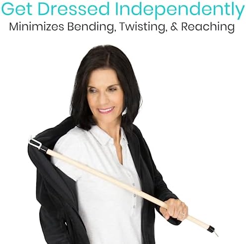GET DRESSED INDEPENDENTLY: Whether recovering from knee or hip surgery, suffering from arthritis or have limited mobility or range of motion, the Vive dressing stick allows you greater independence when dressing for the day. Perfect for those who have trouble bending over, twisting or reaching behind them, the dressing stick is suitable for all articles of clothing including slack and skirts, shirts and undergarments, as well as outerwear such as coats and jackets.