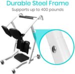 Supports Up To 400 lbs: With a strong steel frame, the transfer stand assist can safely support up to 400 lbs. It fits through most doorways and has four swivel casters that easily glide across multiple flooring surfaces.