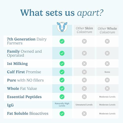 The Power of Colostrum: Our premium colostrum powder supplement provides a wealth of benefits, including immune system support, improved gut health, enhanced muscle growth and repair, anti-aging properties, restorative sleep, and cognitive function improvement. With its rich array of bioactive compounds such as immunoglobulins, lactoferrin, growth factors, and peptides, our colostrum powder supplement is a true original superfood that supports overall health and wellness.