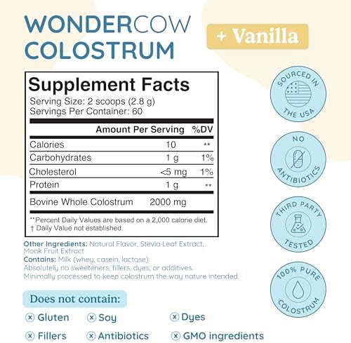 Bovine colostrum has been shown to provide a variety of health benefits. With our premium WonderCow colostrum powder supplement, you can experience the full benefits of bovine colostrum. Our product features less processed whole colostrum, which makes it more effective compared to others on the market.